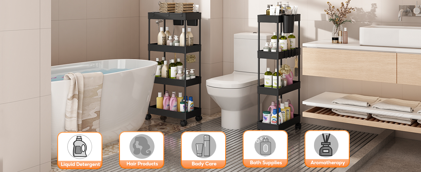 • Vielseitige Einsetzbarkeit: Perfekt für kleine Badezimmer, lässt sich dieser Trolley auch als Gewürzregal, Kinderzimmer-Organizer oder Bürotrolley nutzen.