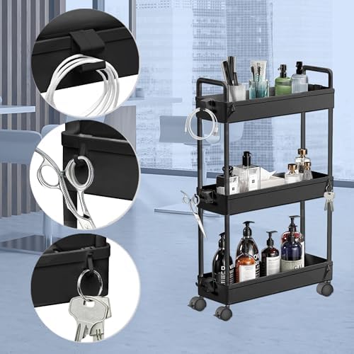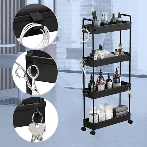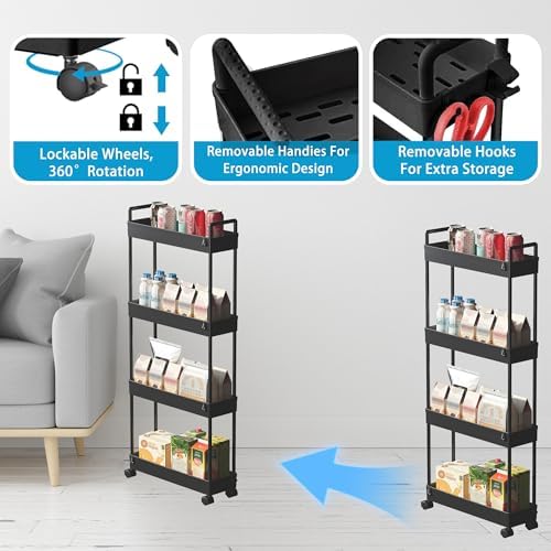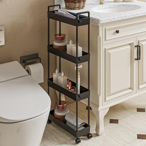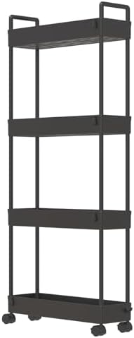 Küchenwagen von Rollwagen – Schmaler 4-stöckiger Aufbewahrungswagen mit Rollen für Bad, Küche und Büro (Schwarz)