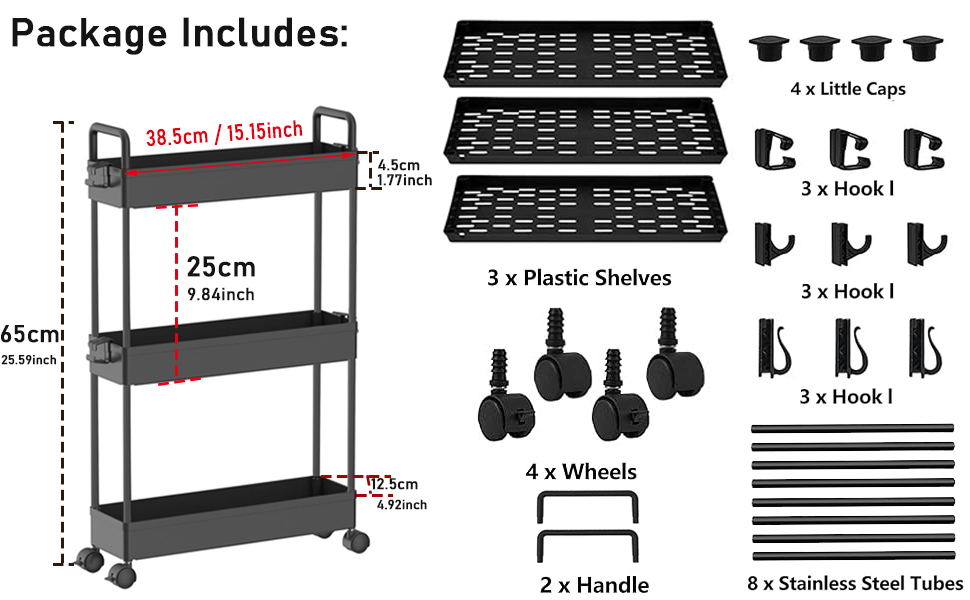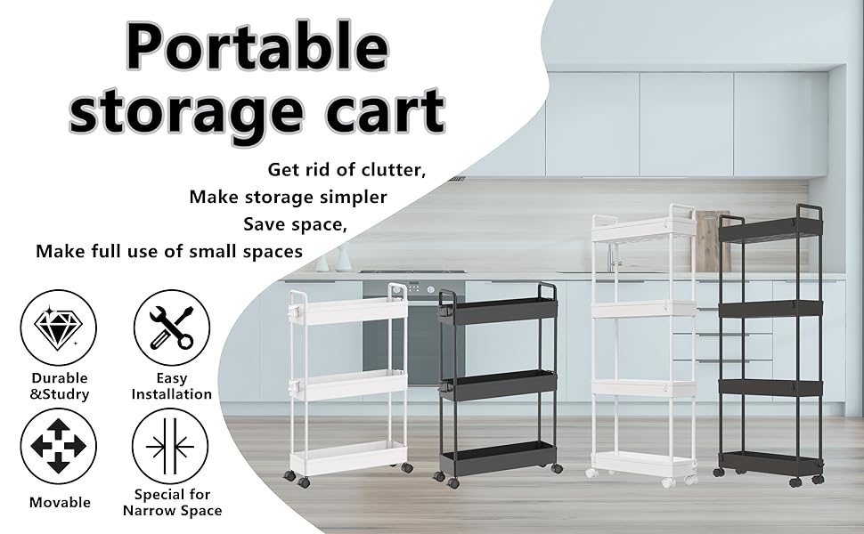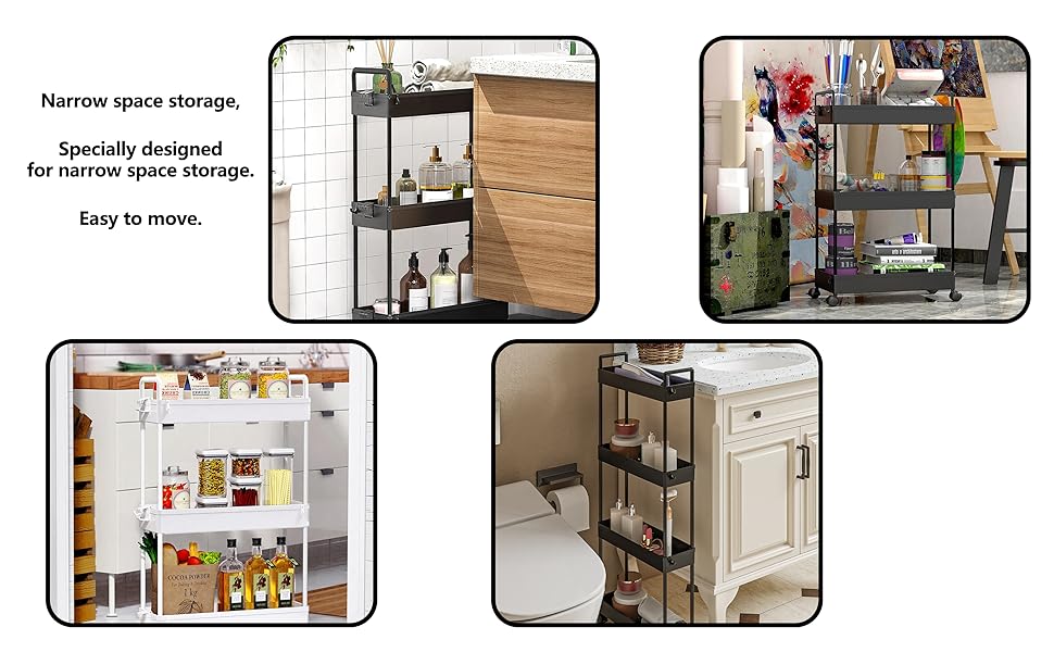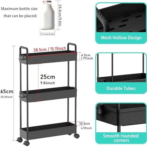 • Platzsparendes Design: Der schmale Aufbewahrungswagen misst nur 12,5 cm in der Breite und passt perfekt in kleine Nischen, ideal für begrenzte Räume.