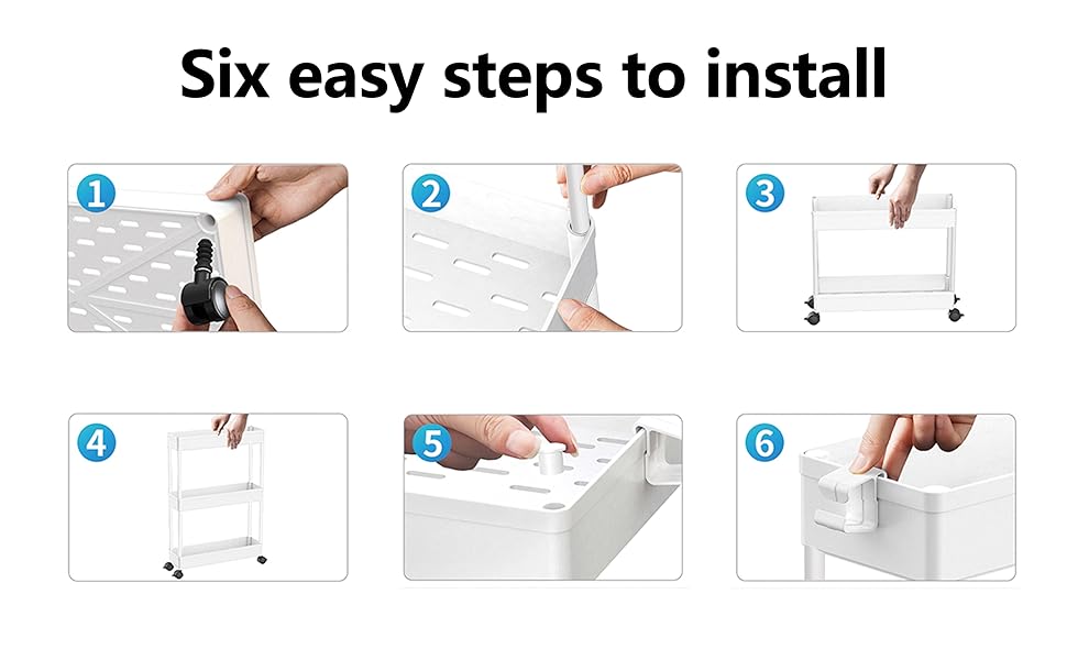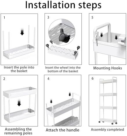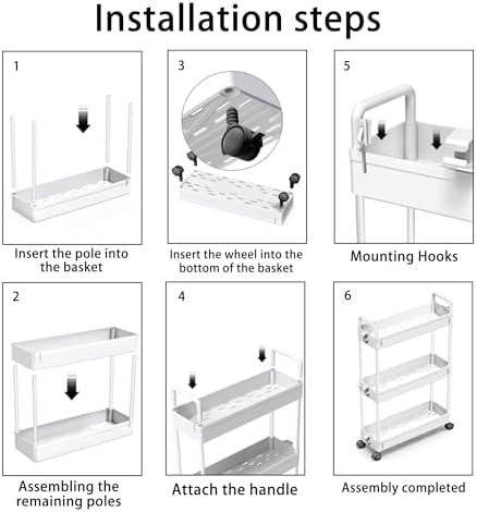 Der Küchenwagen kommt mit 12 abnehmbaren Haken, die als praktischer Helfer dienen, um Küchentücher, Badezimmerutensilien, Bürsten oder Topflappen griffbereit zu halten. Dies hilft, den verfügbaren Platz optimal zu nutzen. Die mitgelieferten detaillierten Anleitungen und beschrifteten Teile ermöglichen eine schnelle und unkomplizierte Montage.