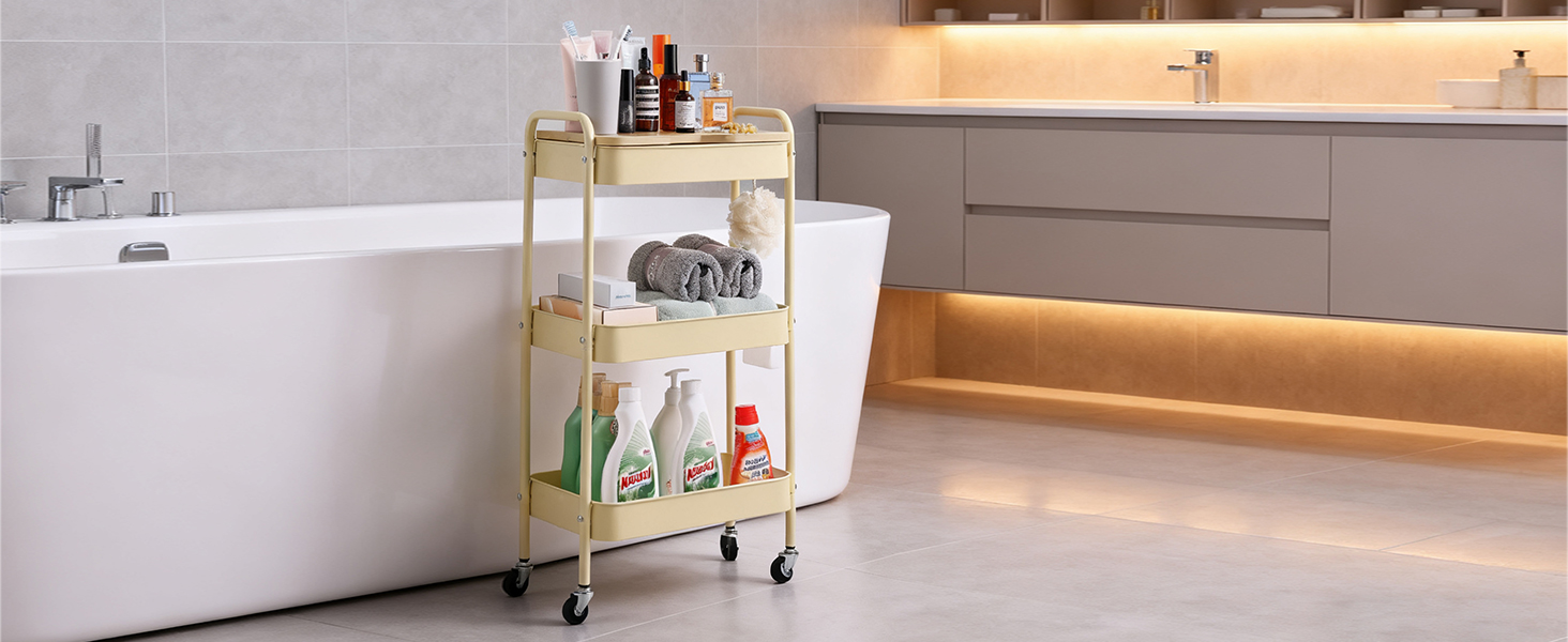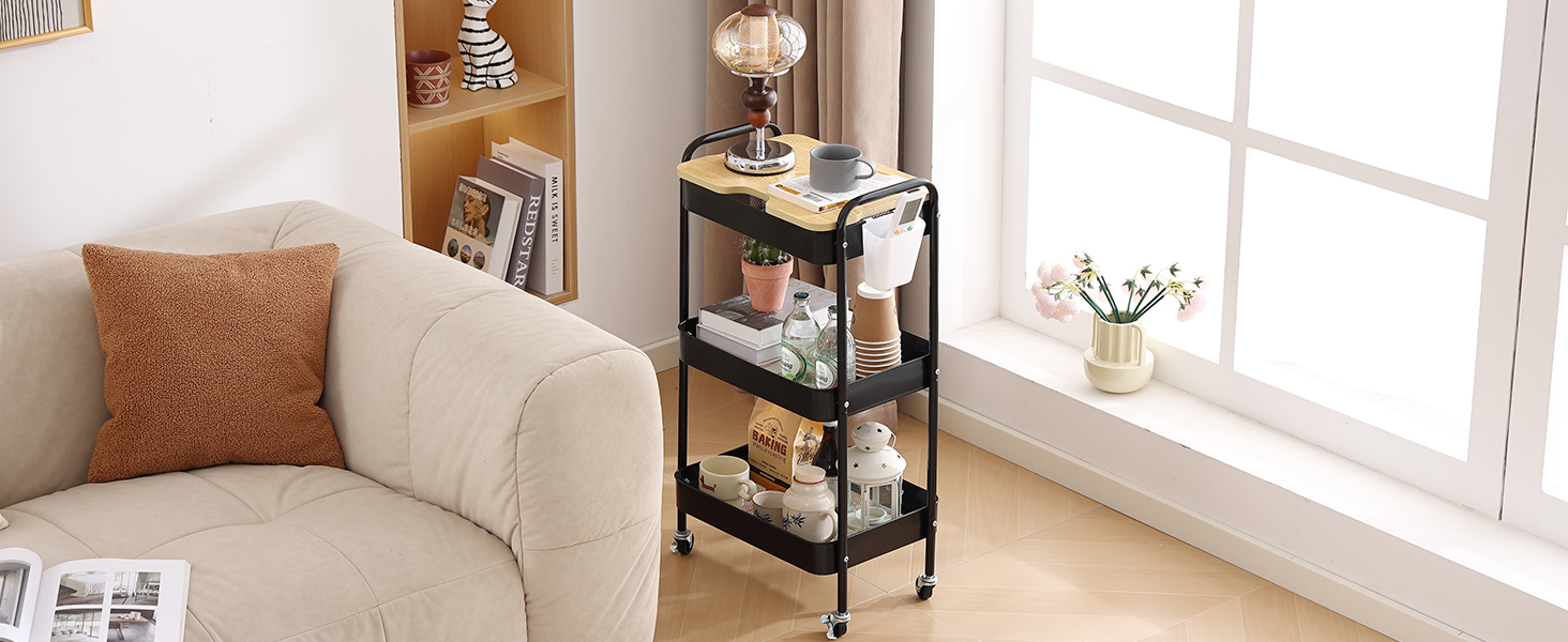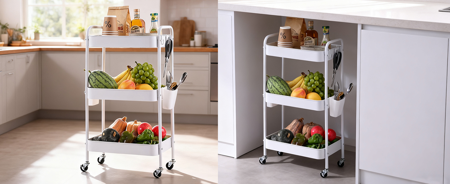 Von der Küche über das Badezimmer bis hin zum Schlafzimmer, Wäschebereich oder der Garage: dieser Utility-Wagen ist der ultimative Organizer. Sein stilvolles und funktionales Design fügt sich nahtlos in jeden Raum ein und hilft Ihnen, Ihren Raum effizient zu entrümpeln und zu organisieren.