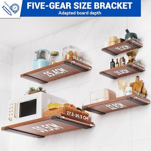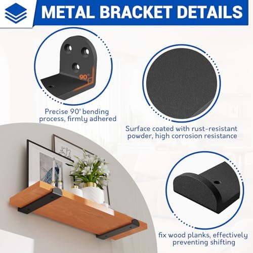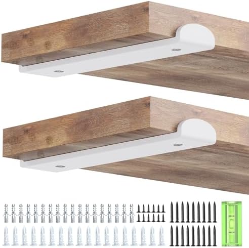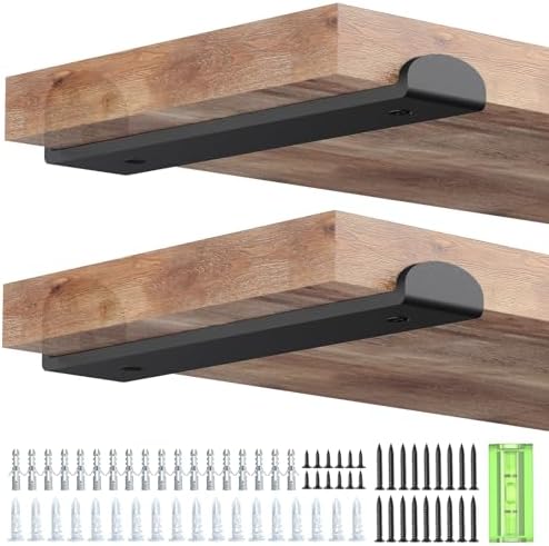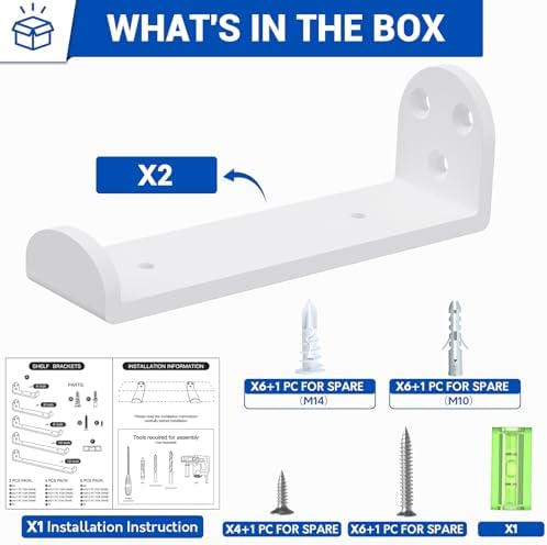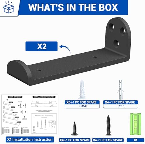 Die Installation ist unproblematisch und erfolgt schnell. Im Lieferumfang sind 4 Halterungen, 16 lange Schrauben für die Wand, 8 kurze Schrauben für die Holzbretter sowie 8 Ziegelbetonanker enthalten. Zudem liegt eine praktische Wasserwaage bei, mit der Sie sicherstellen können, dass Ihre Regale perfekt ausgerichtet sind. Bitte beachten Sie, dass die Bretter nicht im Lieferumfang enthalten sind.